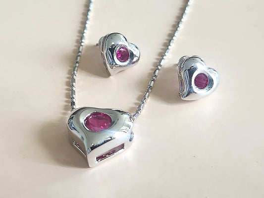 925 Sterling Silver Heart Jewelry Set with High Lustre Finish