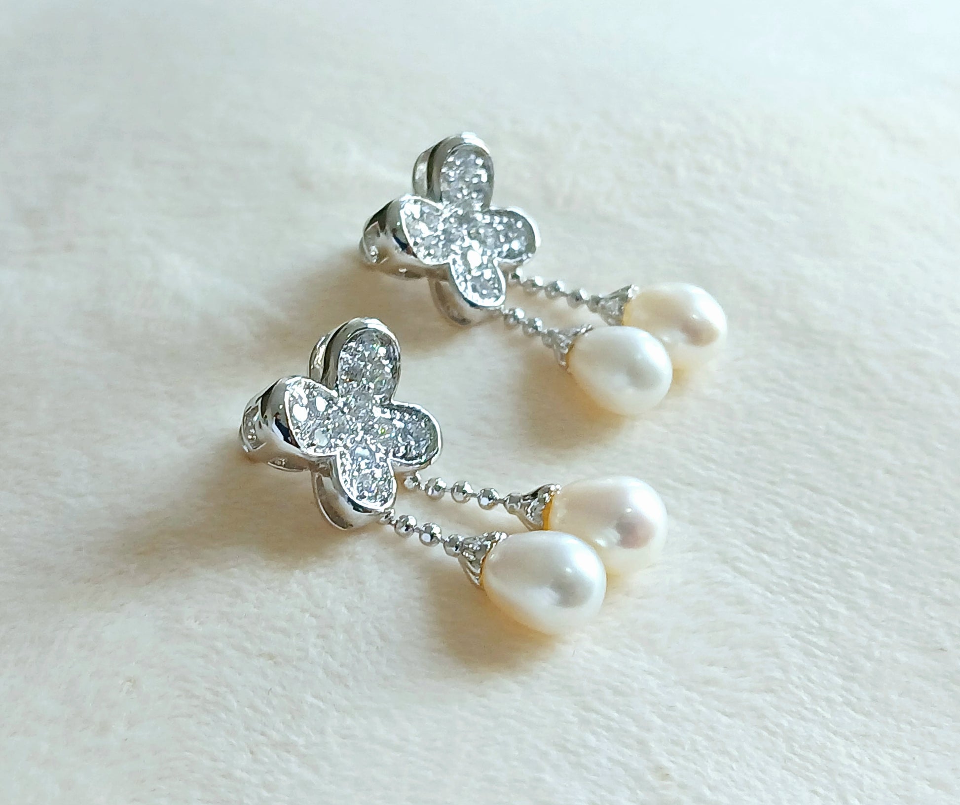 Beautifully crafted 925 sterling silver jewellery with dangling pearls