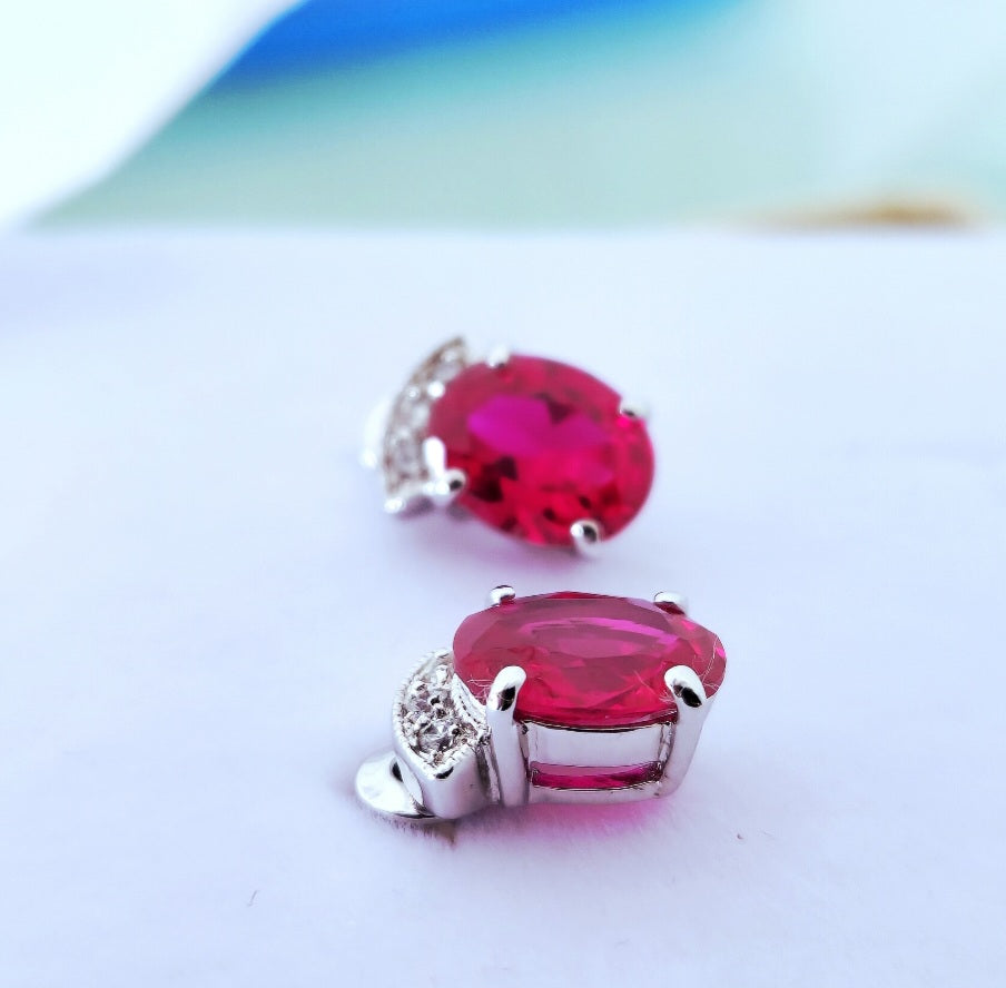 Let your elegance blossom with Ruby Bloom, a radiant pendant and earring set crafted in 925 sterling silver. Featuring vivid ruby-toned stones that dazzle like freshly bloomed petals under moonlight, this set captures the essence of bold femininity.